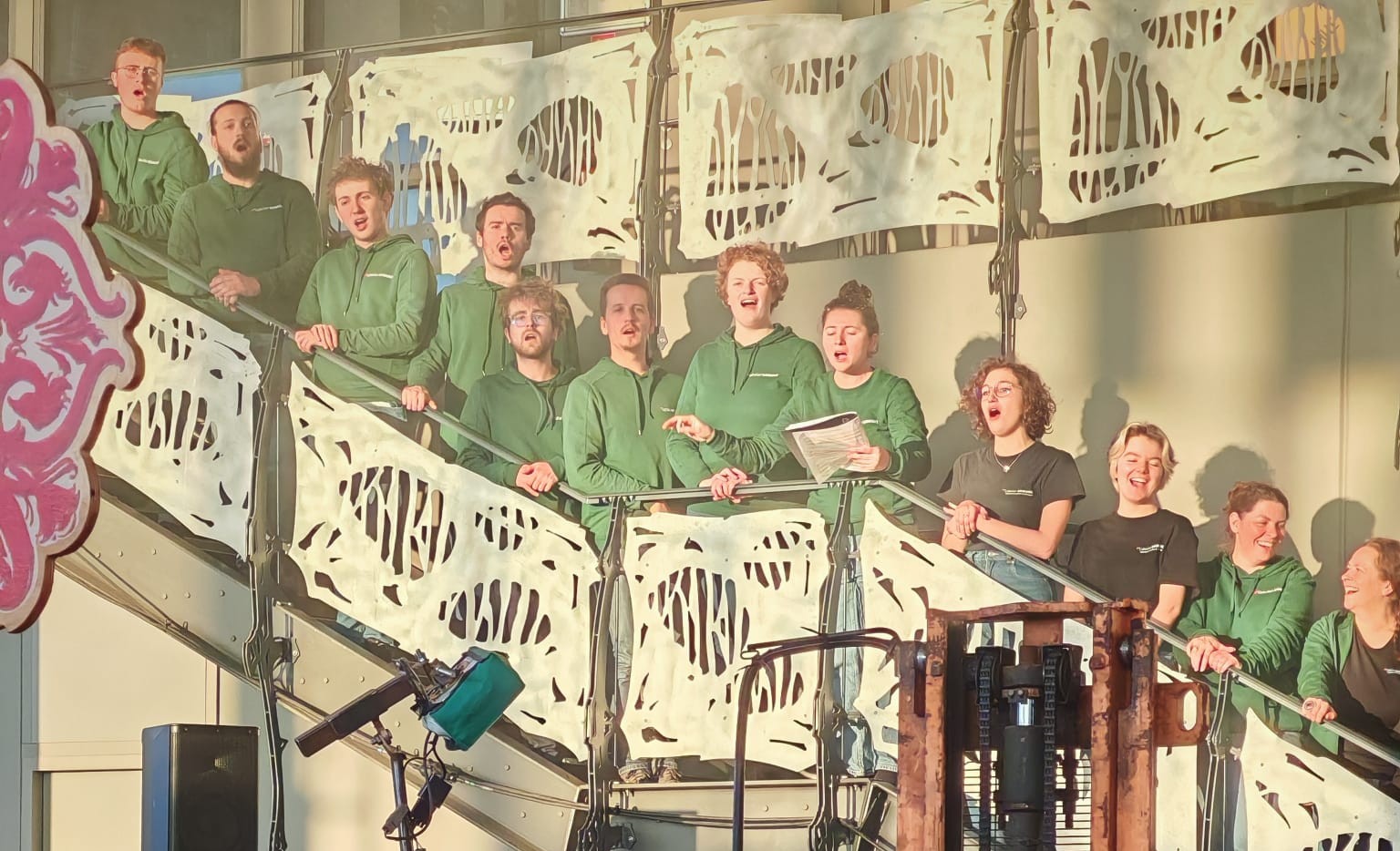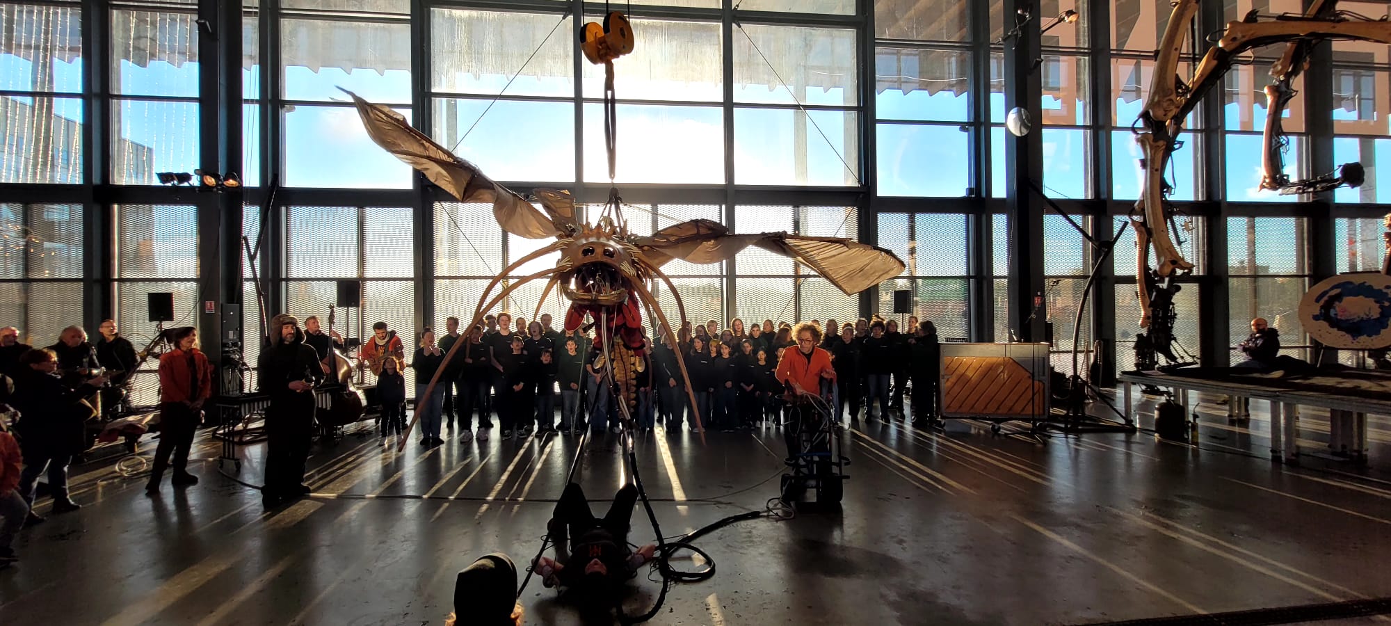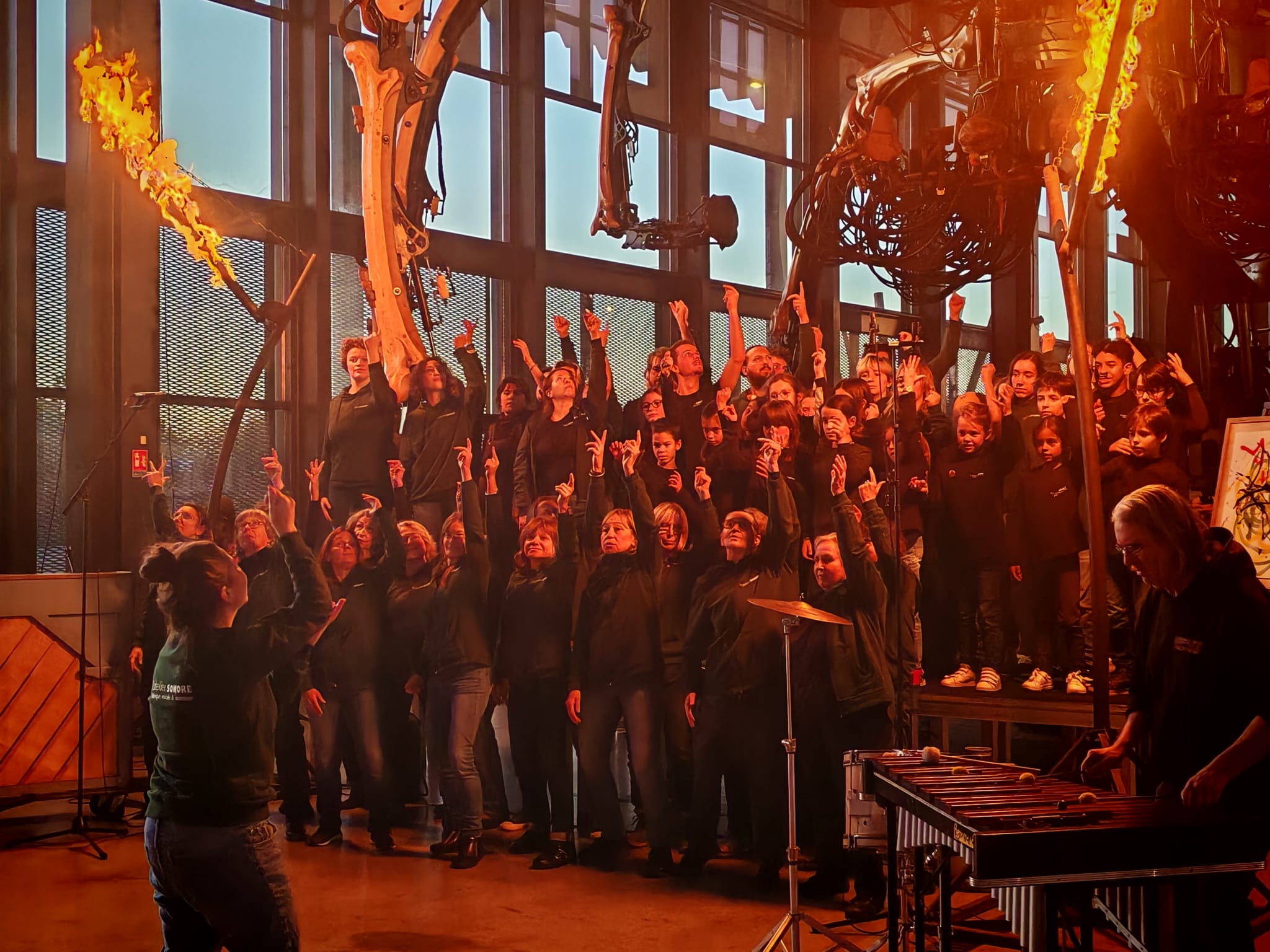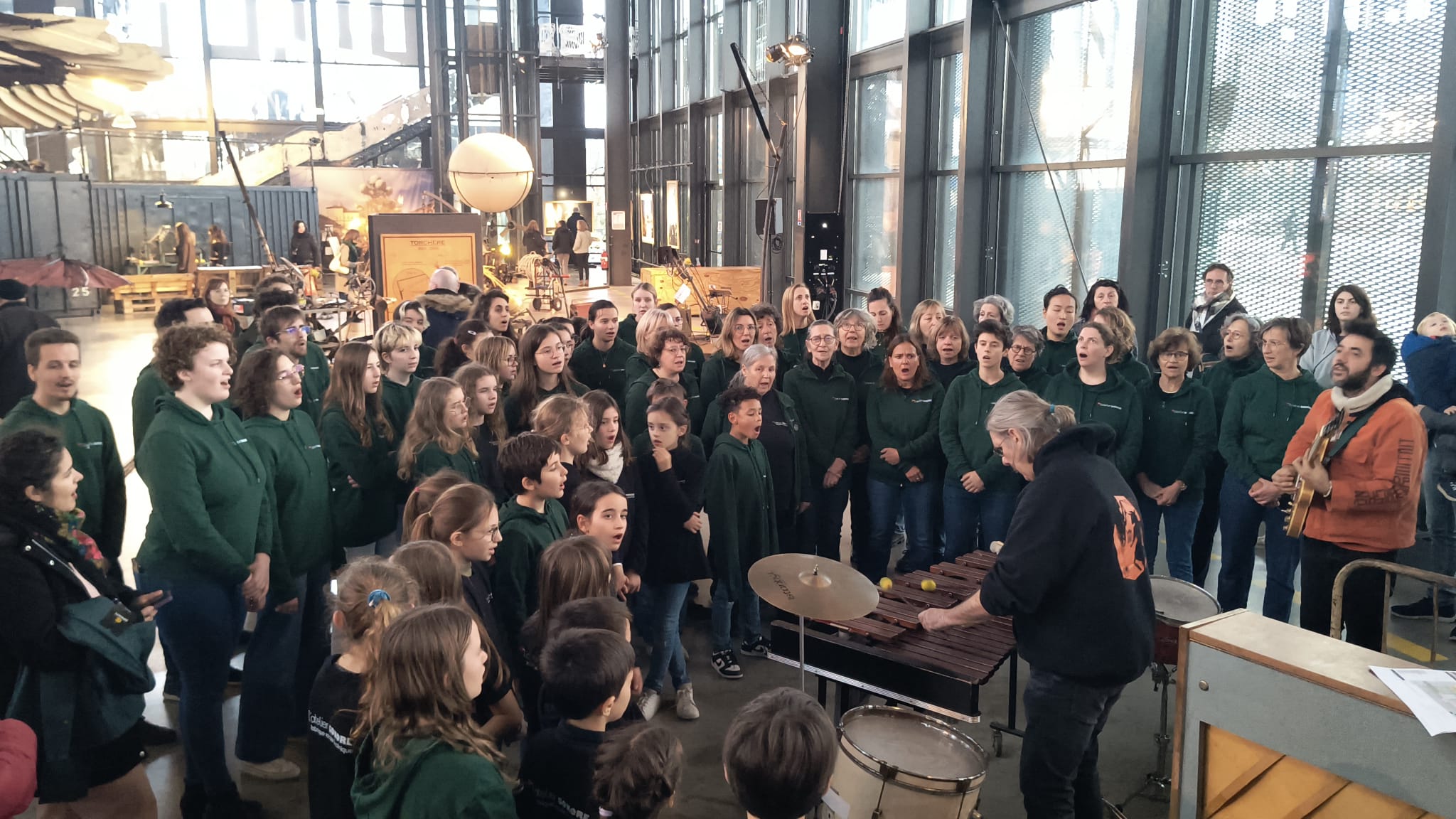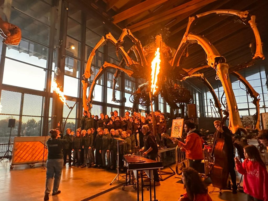 Au coeur de la Halle de la Machine, les choristes ont partagé un bout de leur répertoire sous la direction de leur cheffe Jessie Brenac-Litzinger & improvisé avec les machinistes musiciens et les machines.