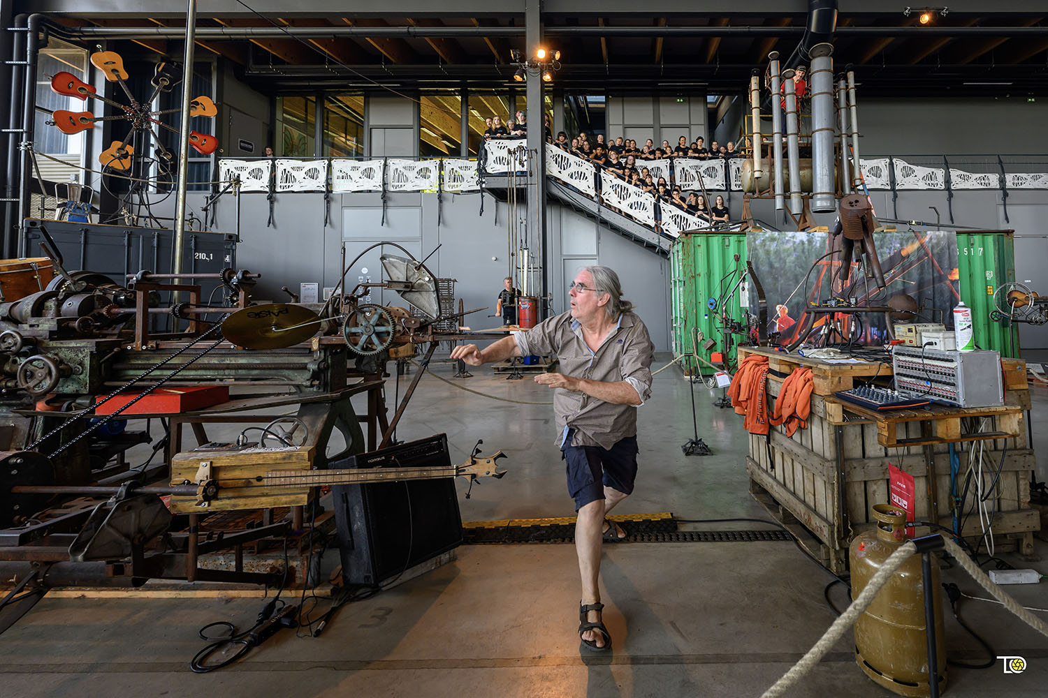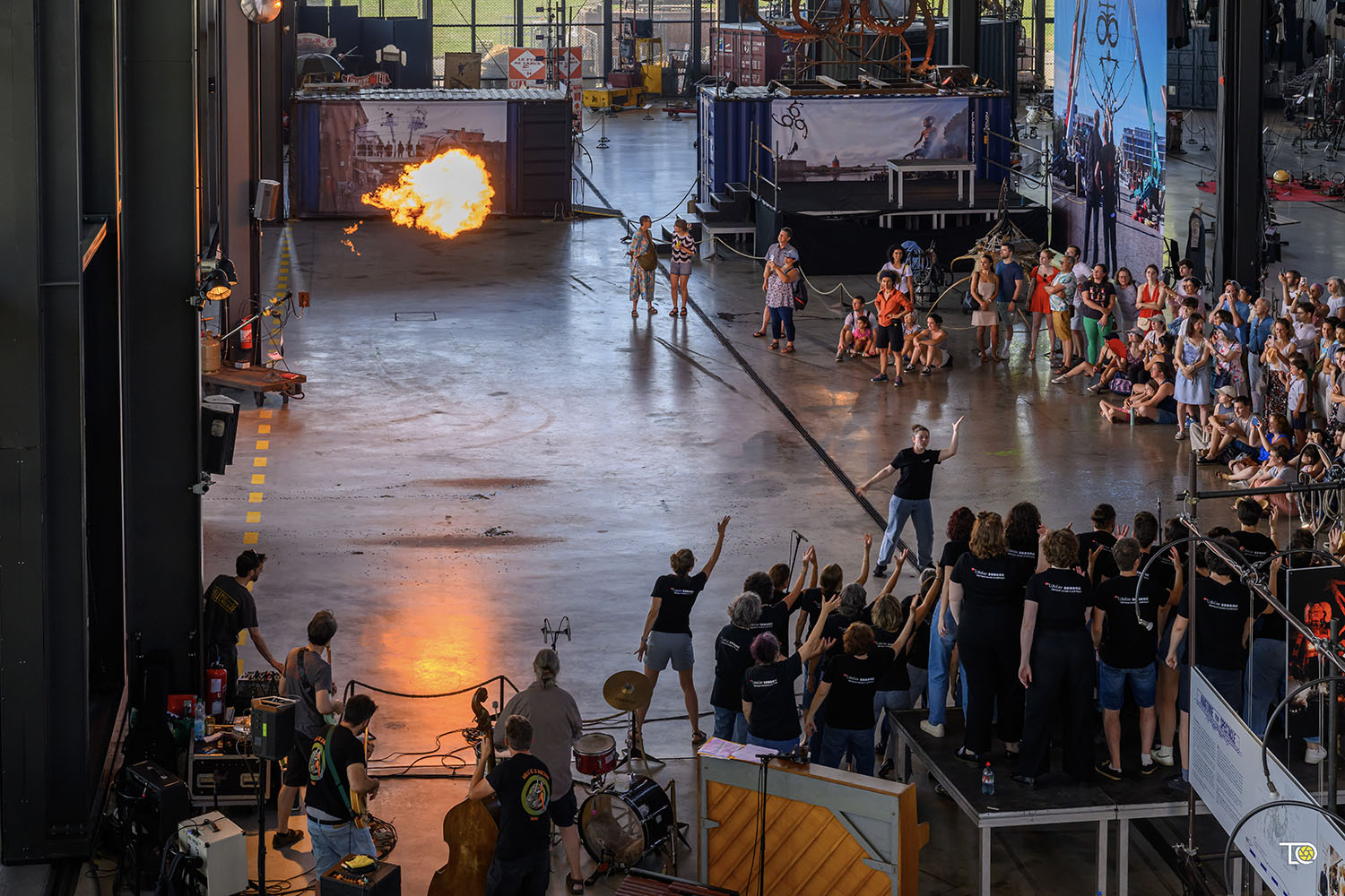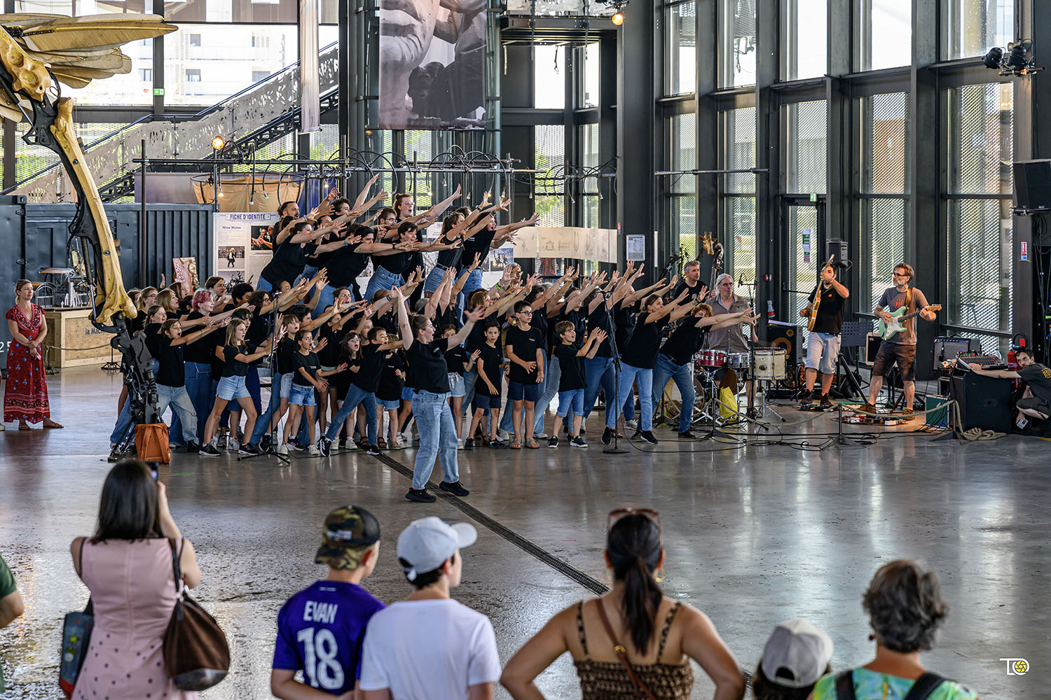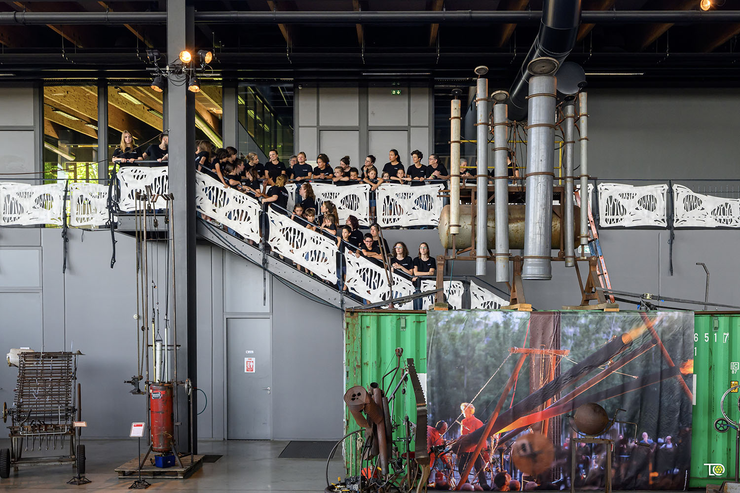 Au coeur de la Halle de la Machine, les choristes ont partagé un bout de leur répertoire sous la direction de leur cheffe Jessie Brenac-Litzinger & improvisé avec les machinistes musiciens et les machines.